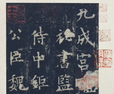 《九成宫醴泉铭》是欧阳询七十五岁是所书,与《化度寺碑》、《皇甫诞碑》、《虞恭公碑》并为 “欧体”的代表作。其笔法瘦硬遒劲,极为深厚有力,气韵生动,法度森严,为千余年来楷书中登峰造极之作,对后世影响极大。